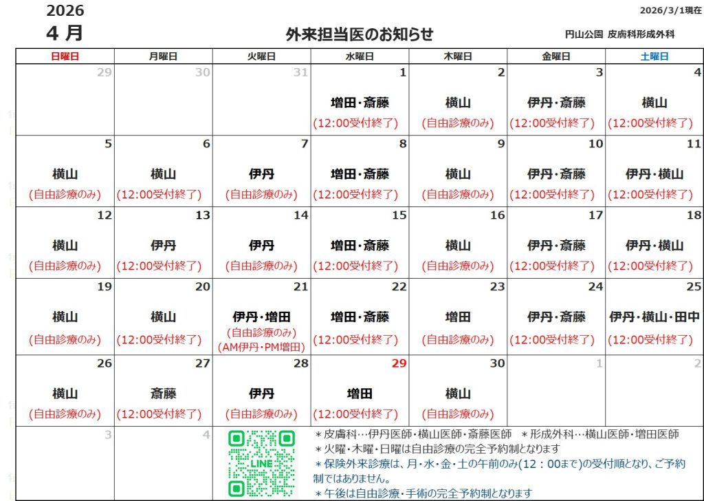 4月の外来担当医につきましては、担当医表をご確認ください。
