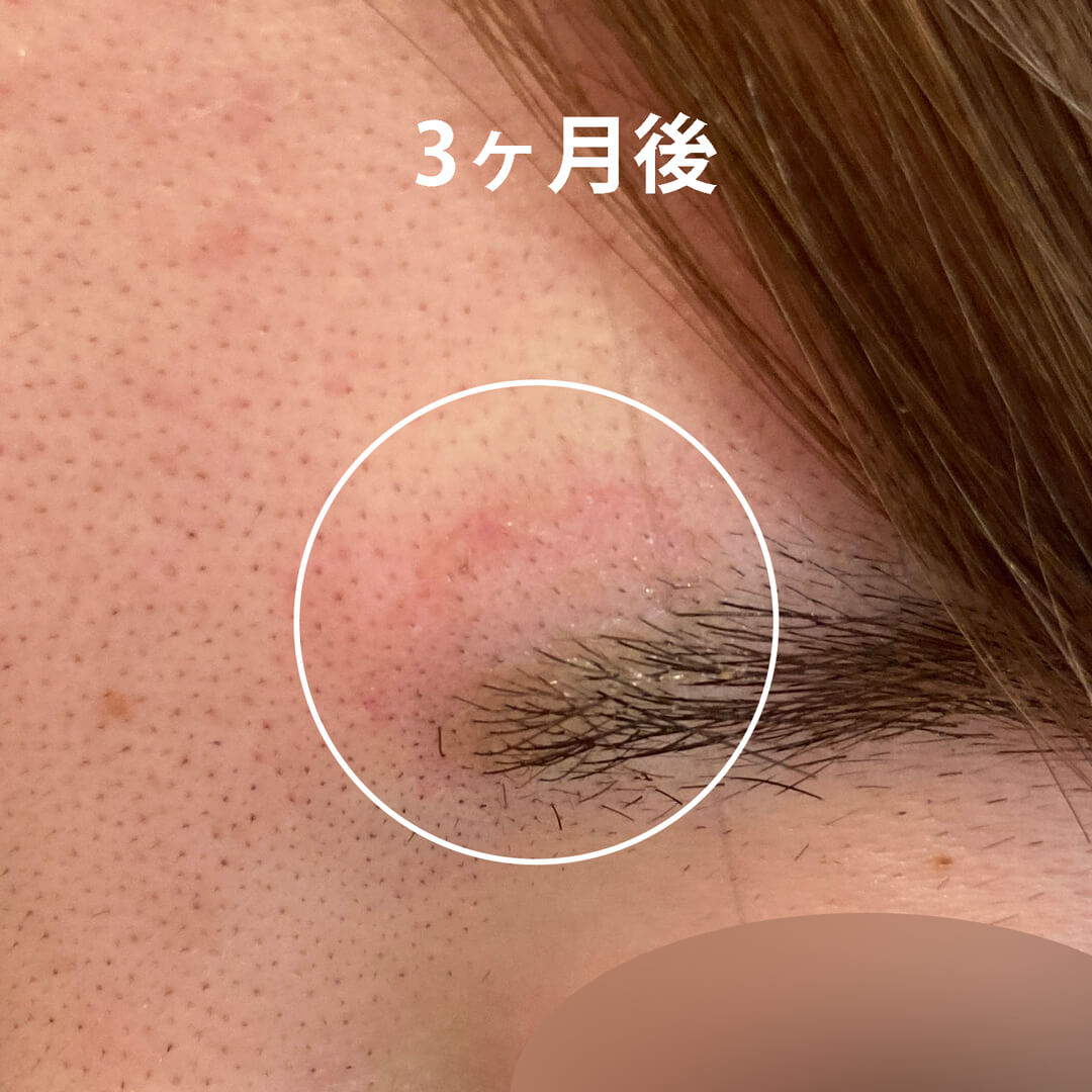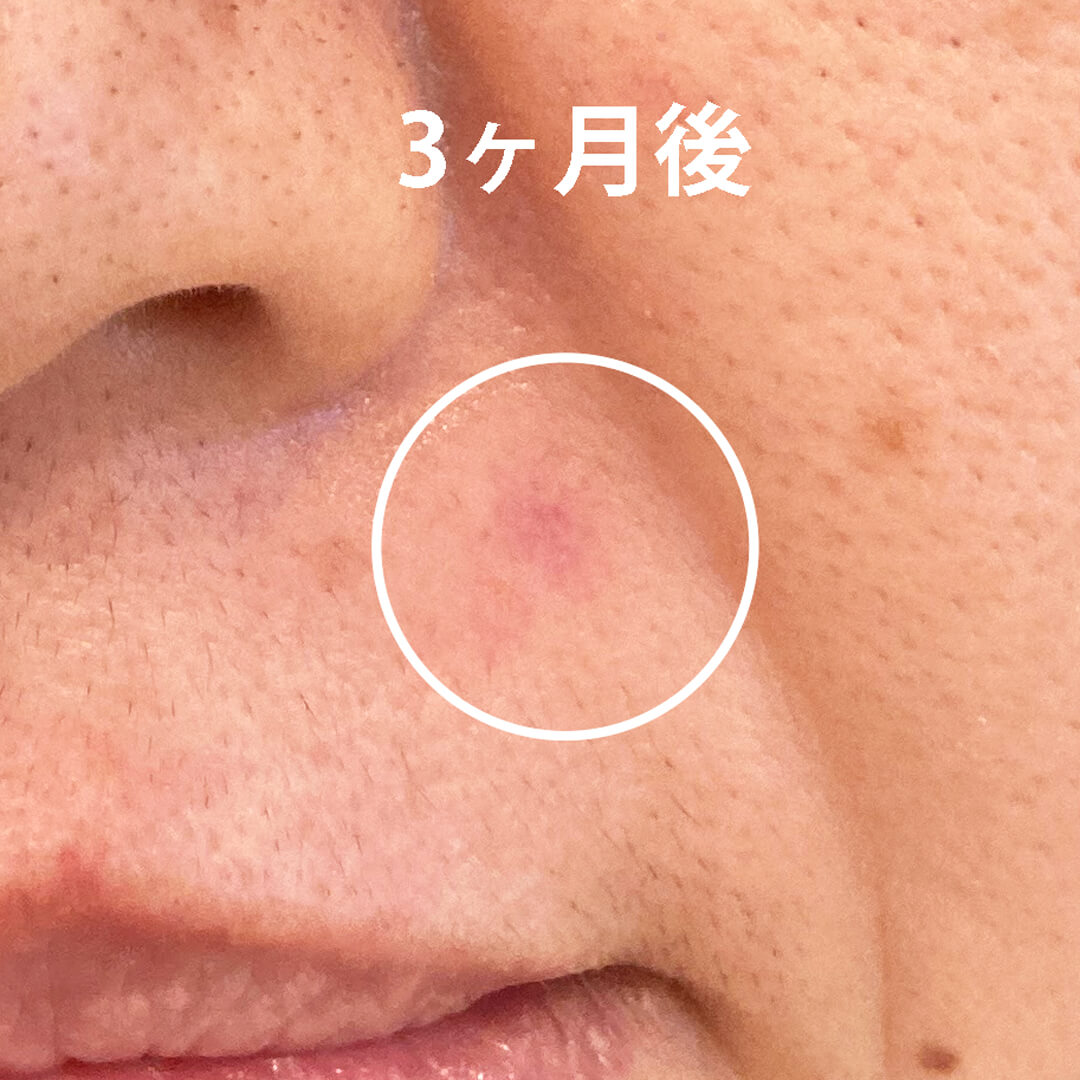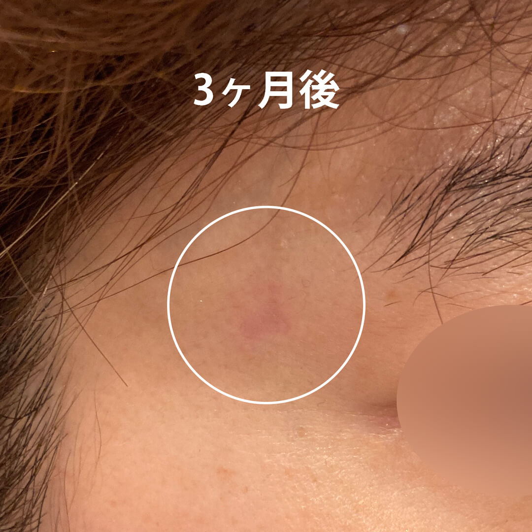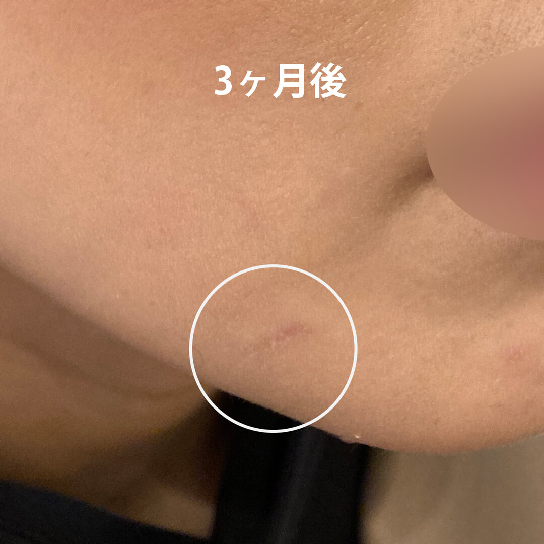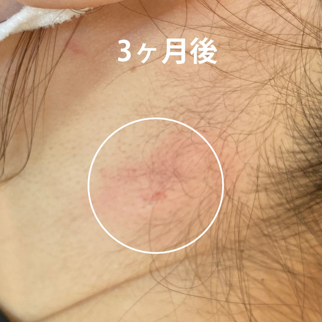 3ヶ月後も軽度の赤みが残ってますが1ヶ月ほどで完全に赤みは引き目立たなくなりました。