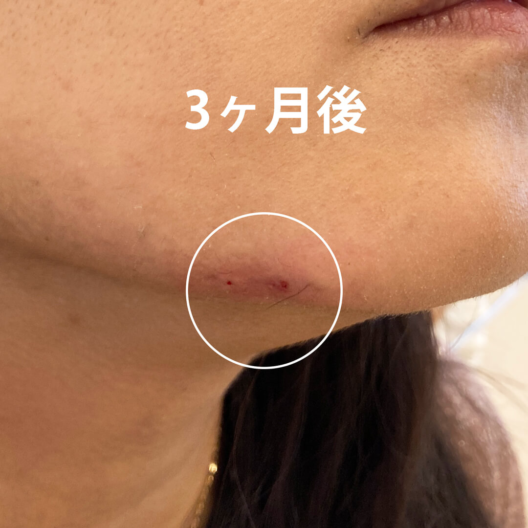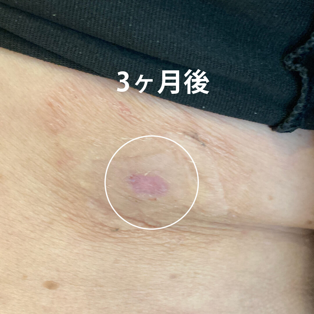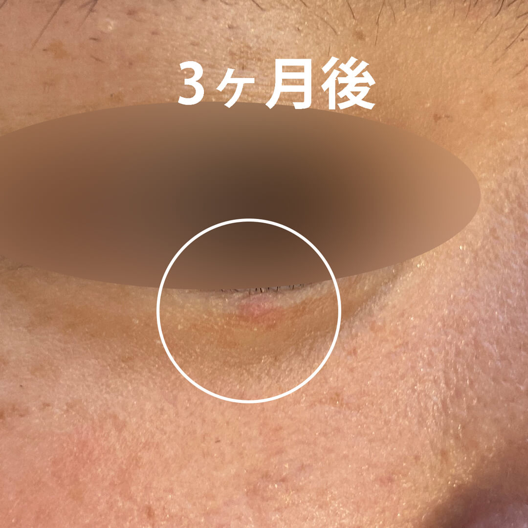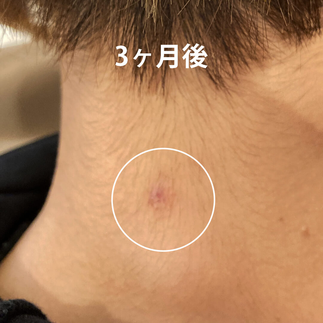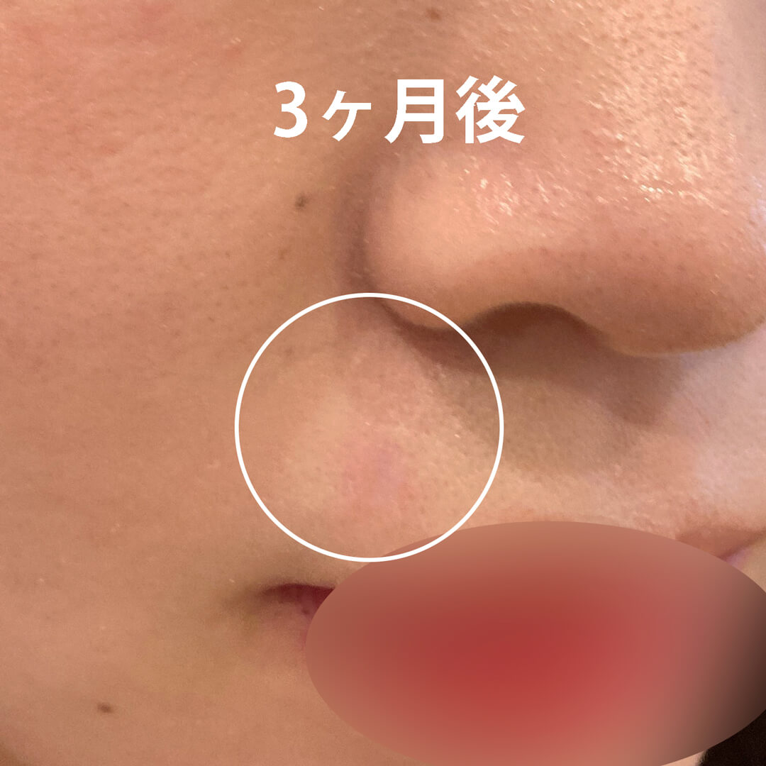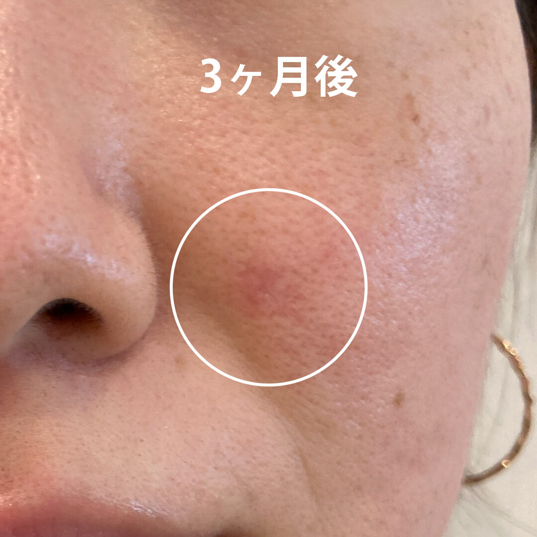 3ヶ月後も軽度の赤みが残ってますが1ヶ月ほどで完全に赤みは引き目立たなくなりました。