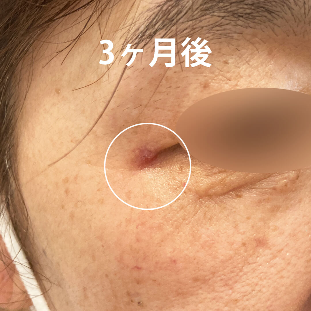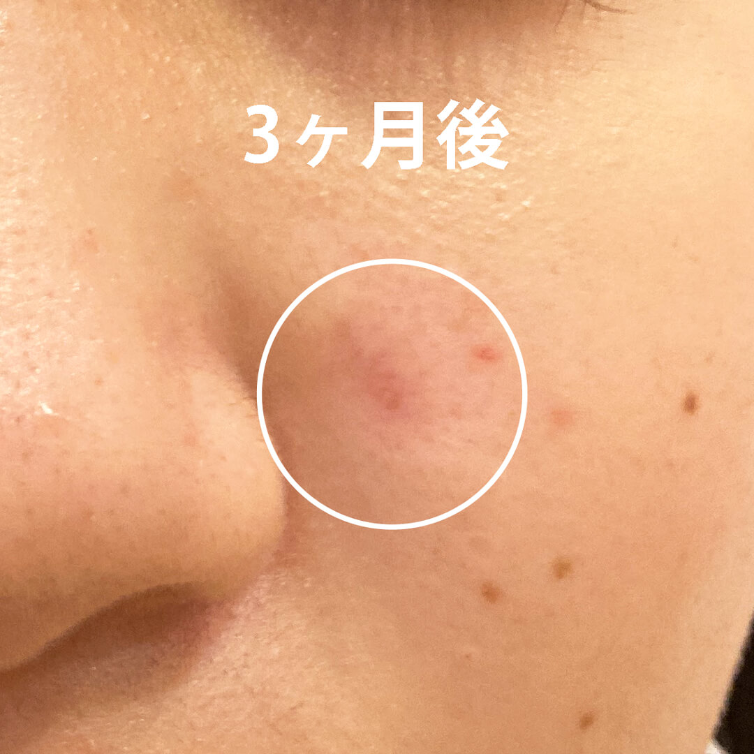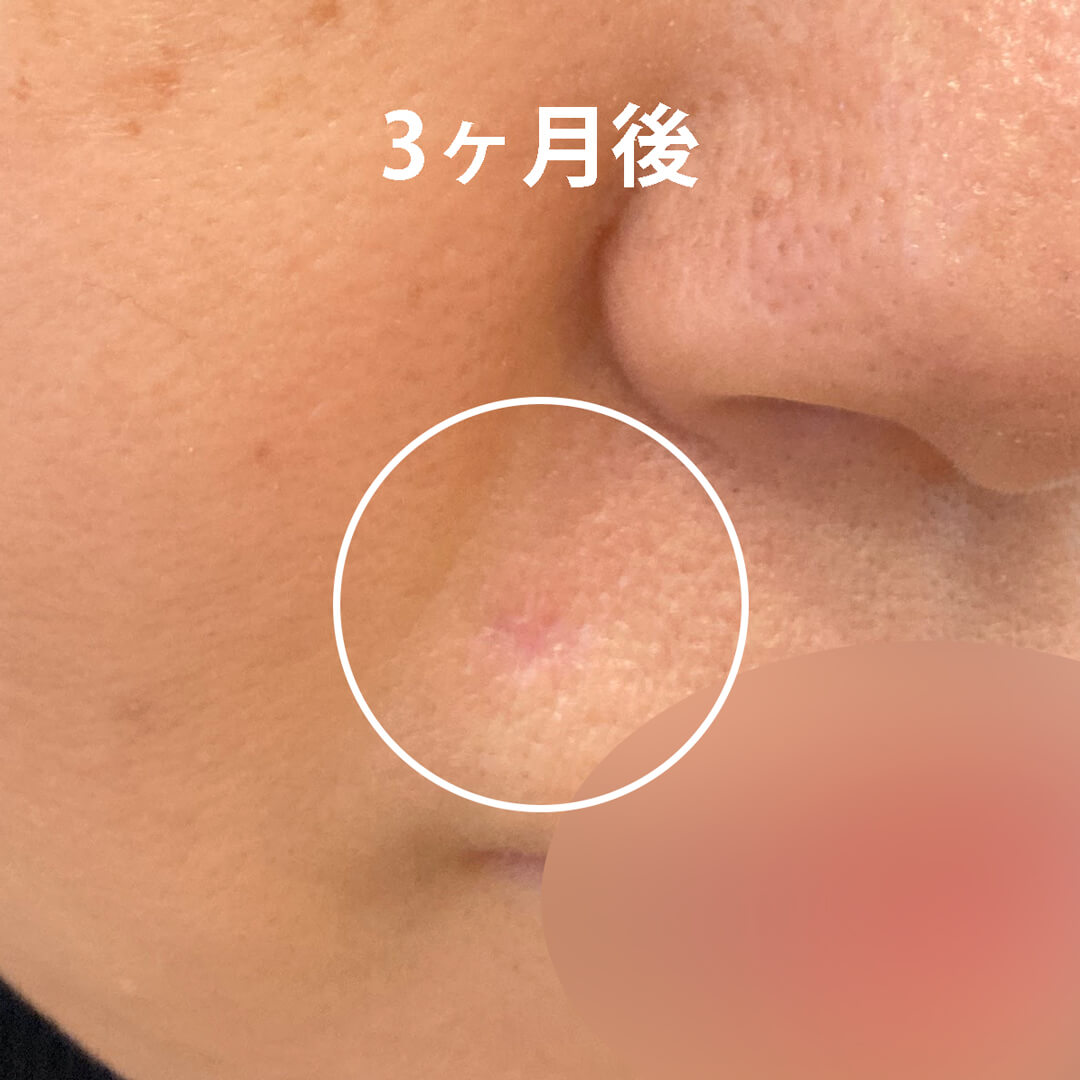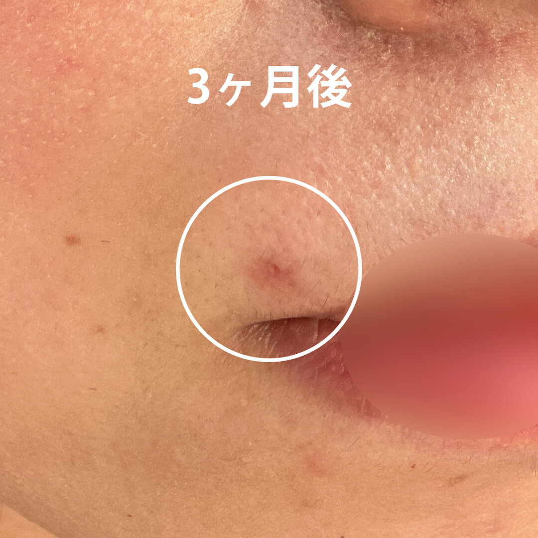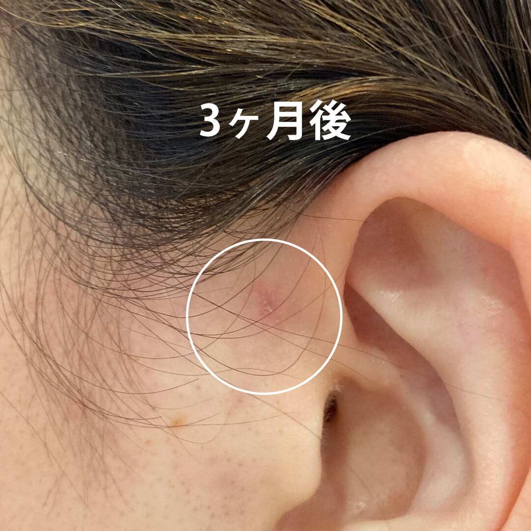 3ヶ月後も軽度の赤みが残ってますが1ヶ月ほどで完全に赤みは引き目立たなくなりました。
