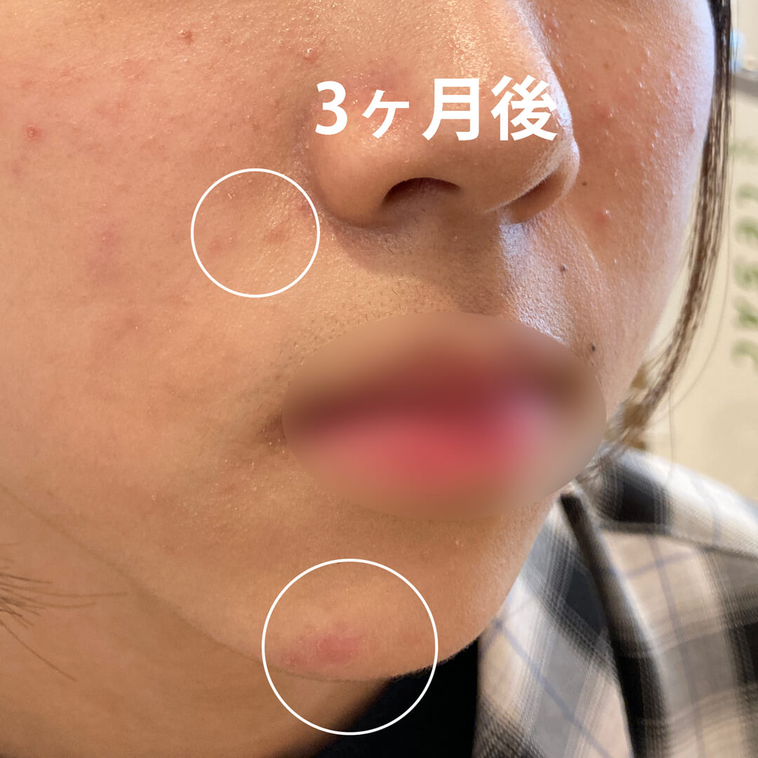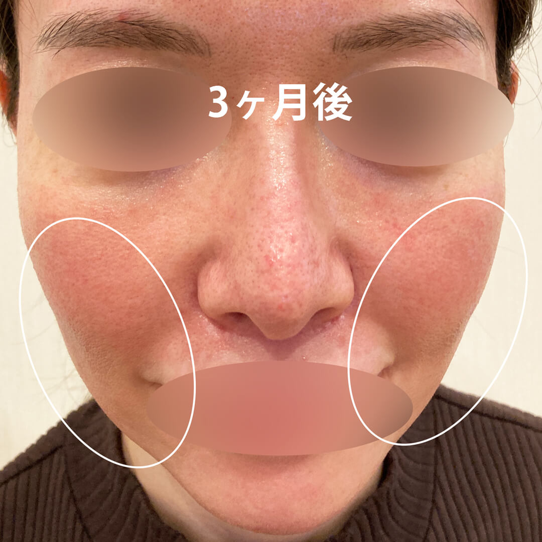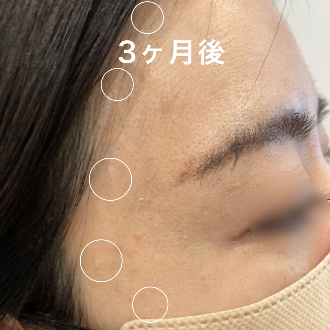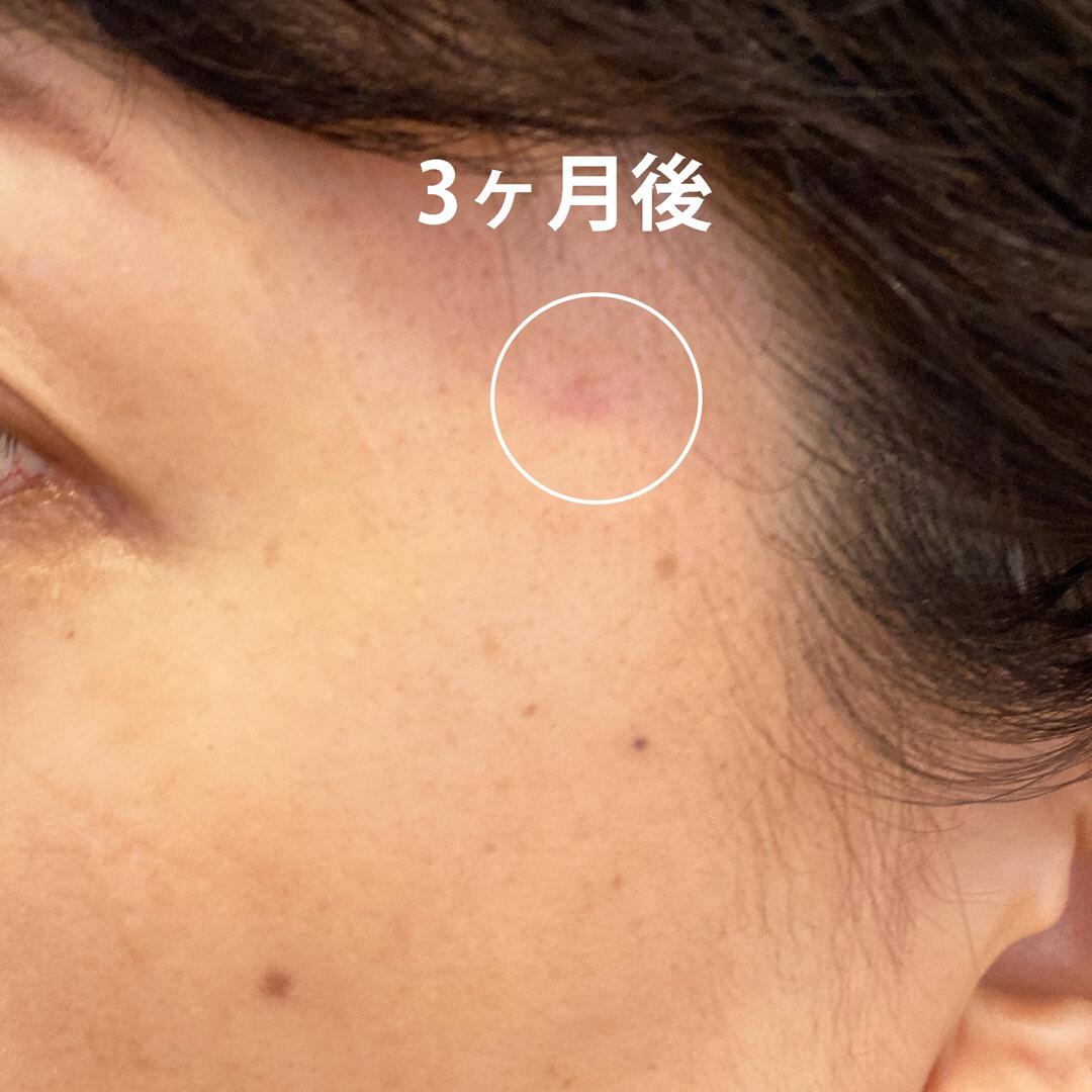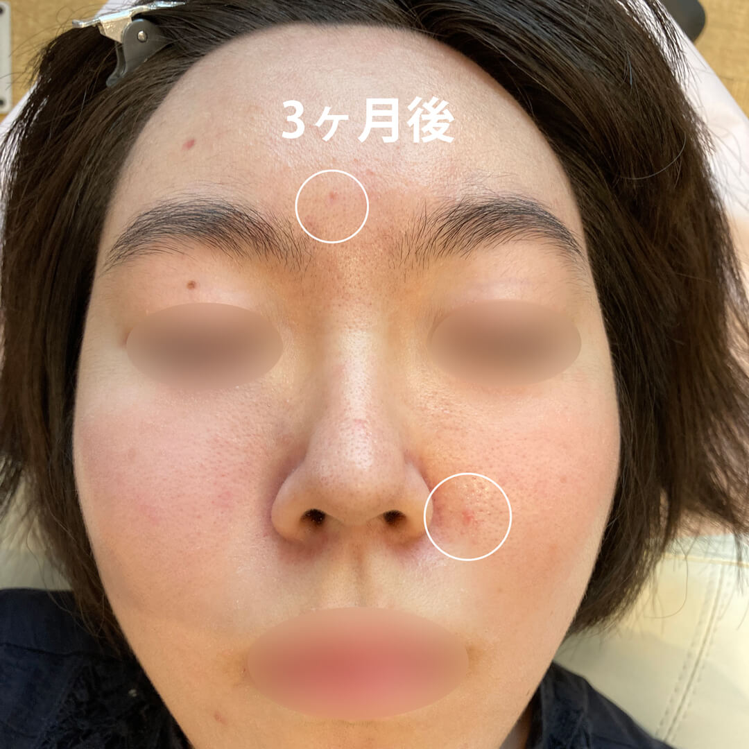 3ヶ月後も軽度の赤みが残ってますが1ヶ月ほどで完全に赤みは引き目立たなくなりました。