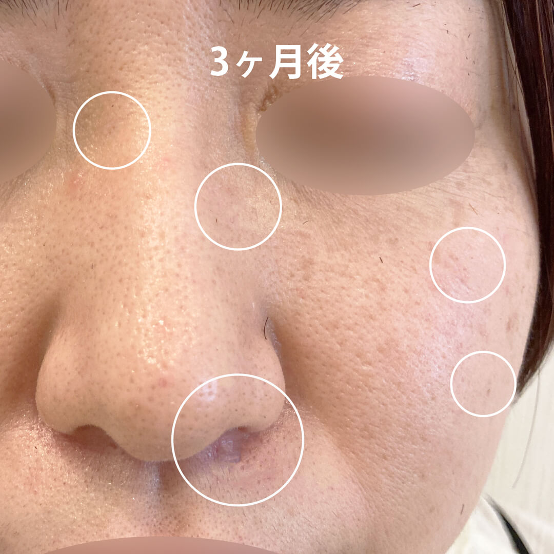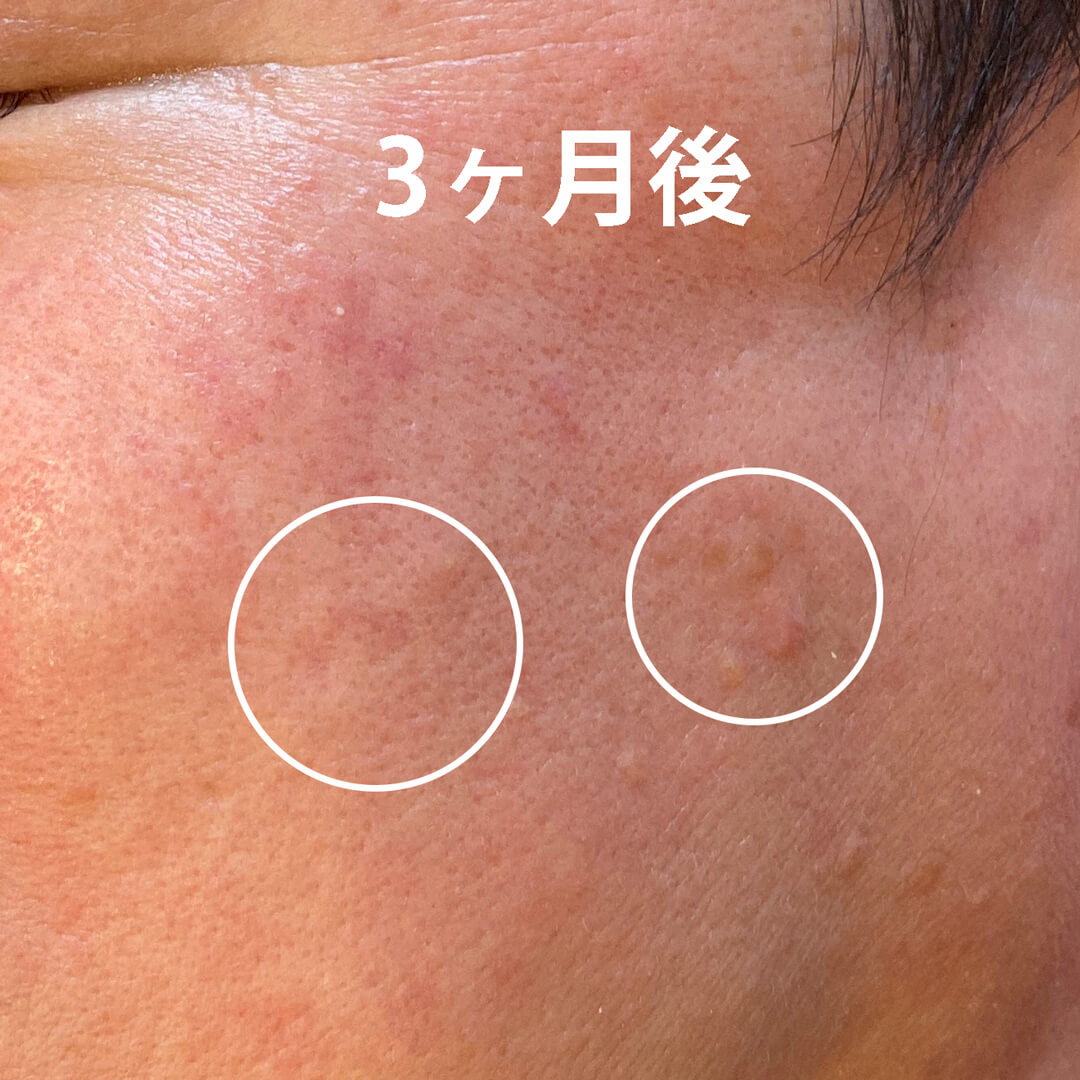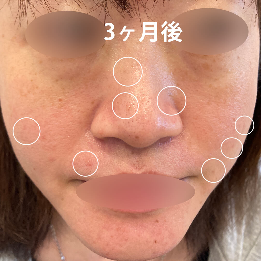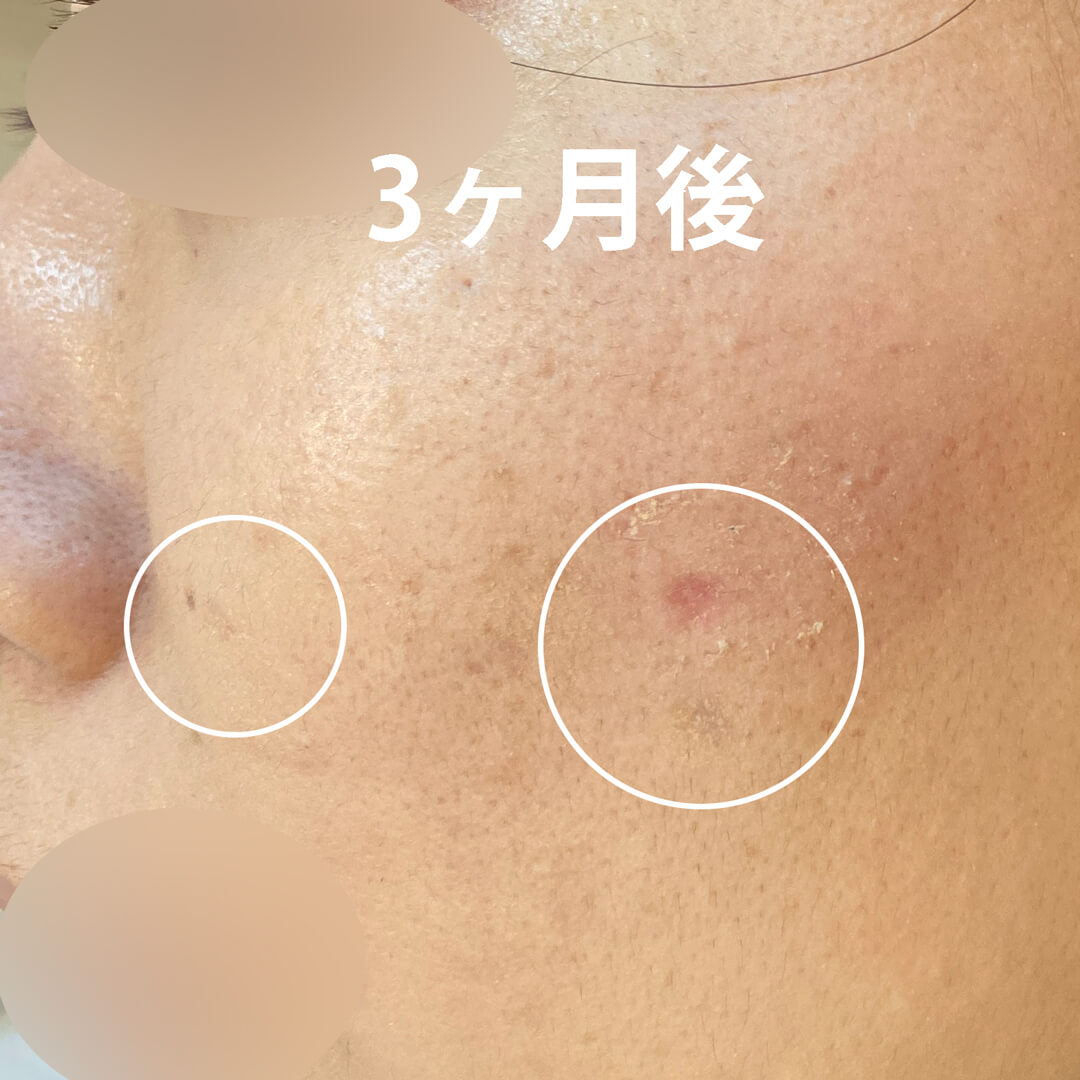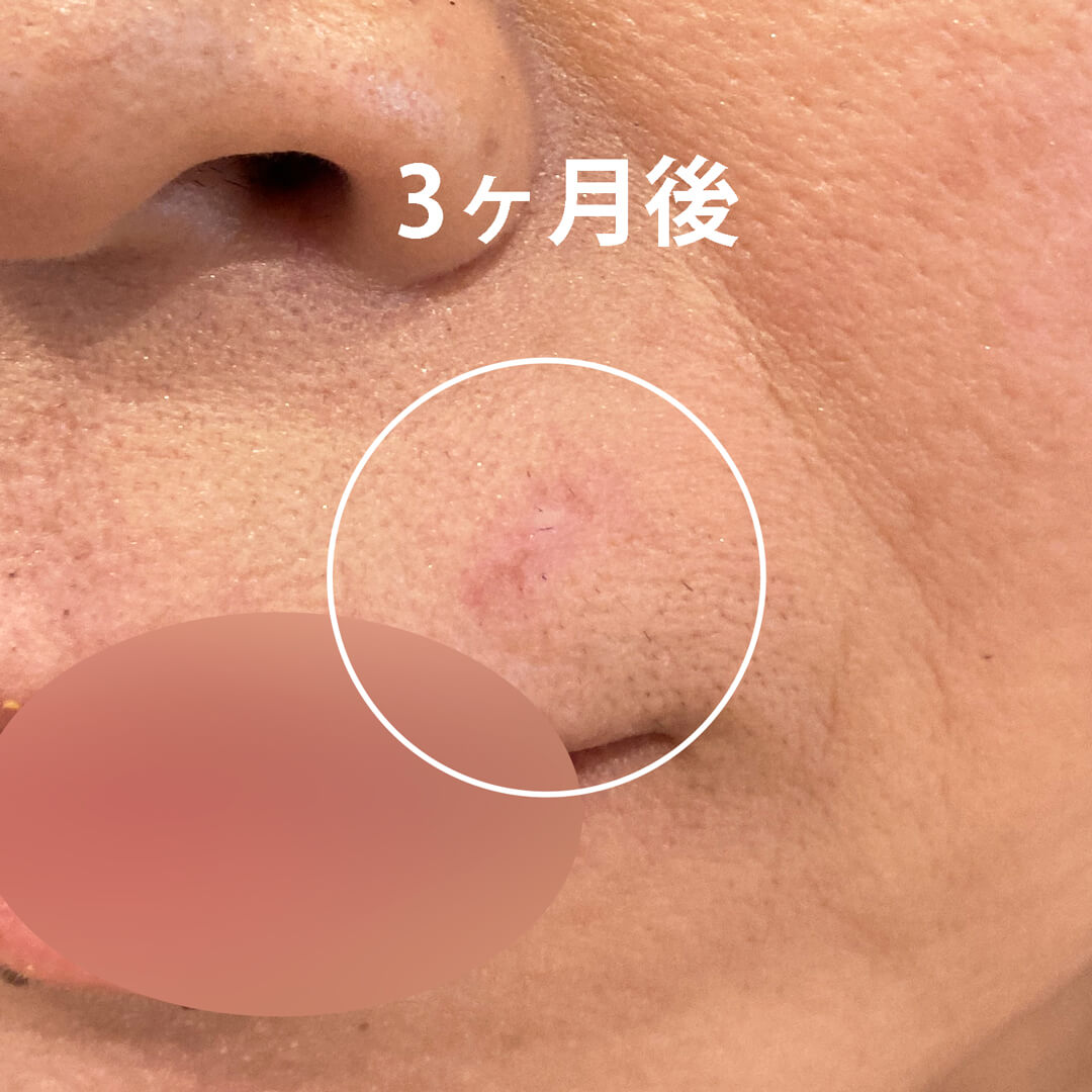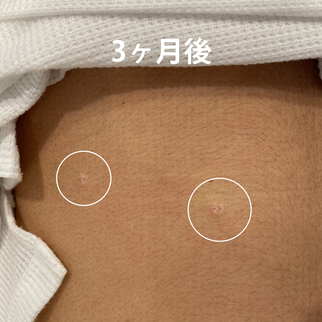 3ヶ月後も軽度の赤みが残ってますが1ヶ月ほどで完全に赤みは引き目立たなくなりました。