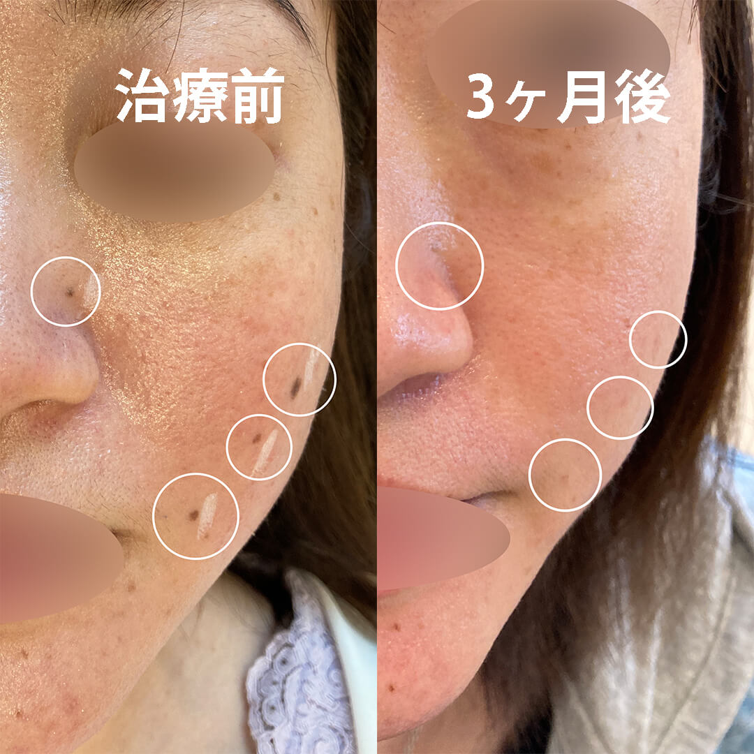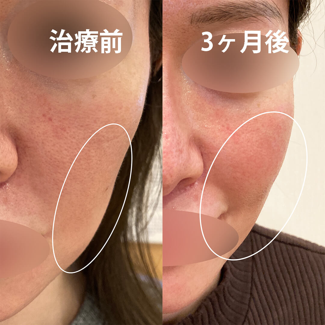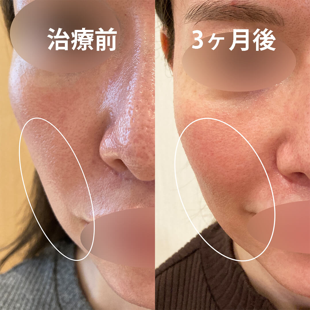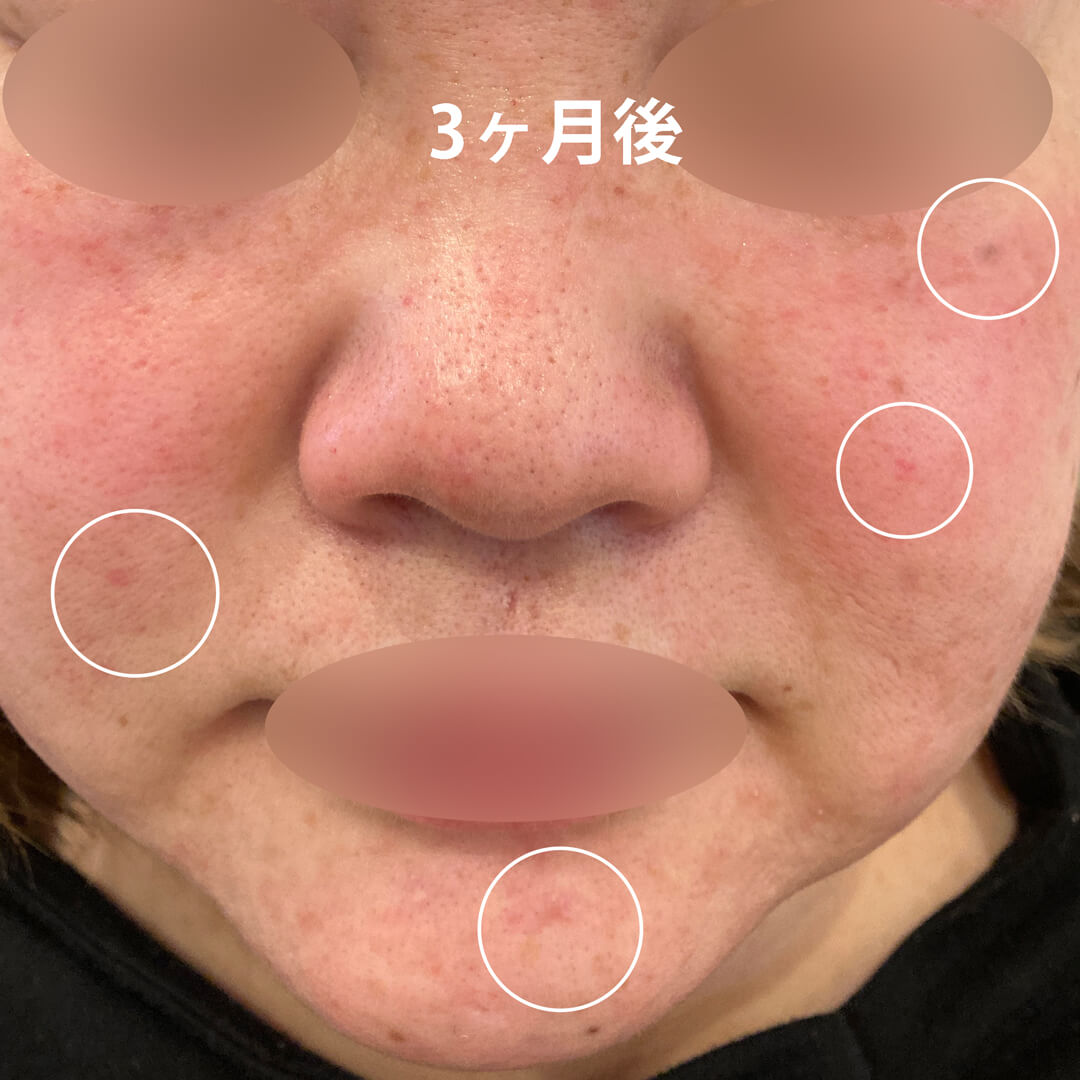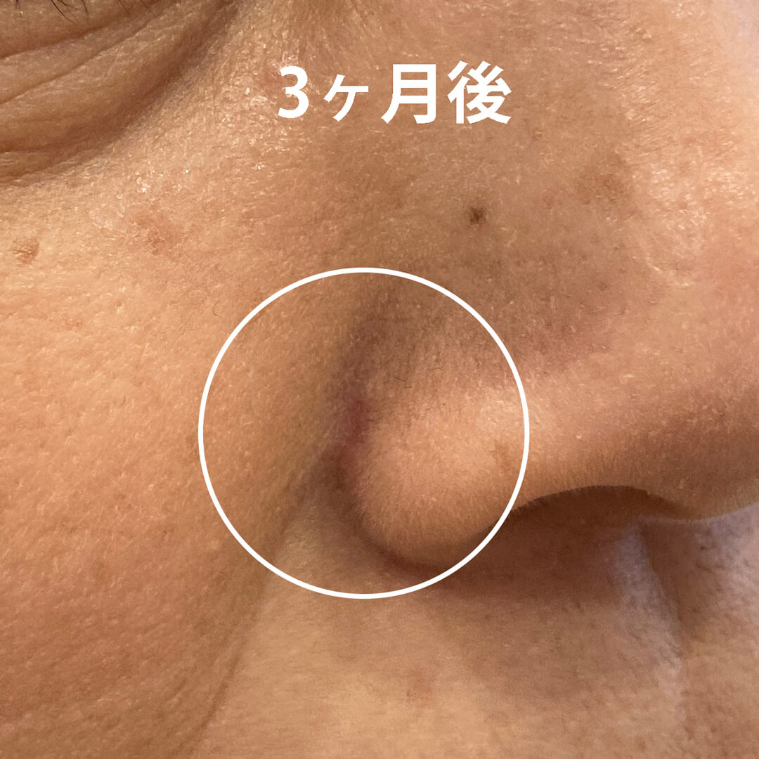 3ヶ月後も軽度の赤みが残ってますが1ヶ月ほどで完全に赤みは引き目立たなくなりました。