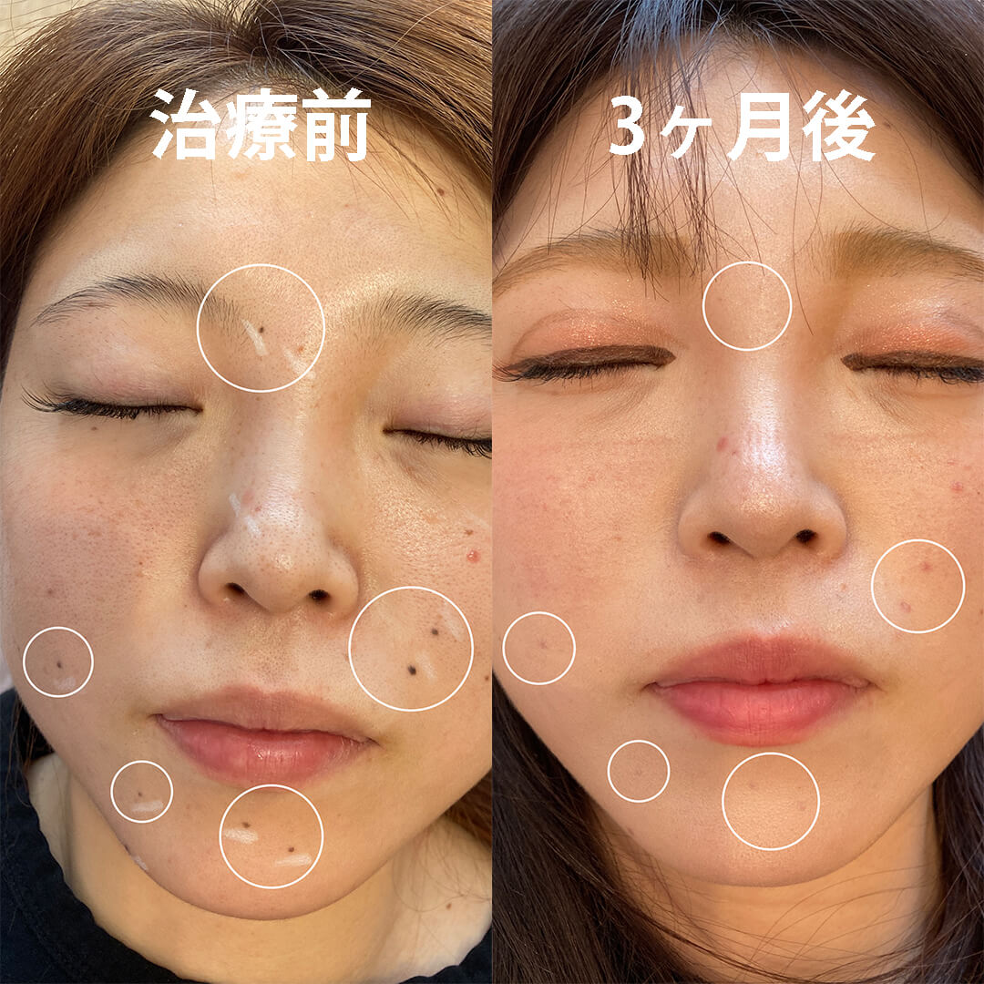 月1回ごとに2回照射しましたが細かいシミは目立たなくなりました。
